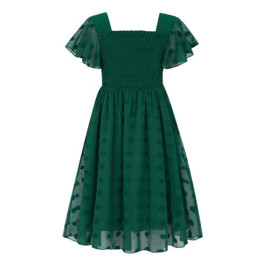 Aideaone Girls Chiffon Dress Flutter Ruffle Short Sleeve Kids Square Neck Frocks 6-13Y