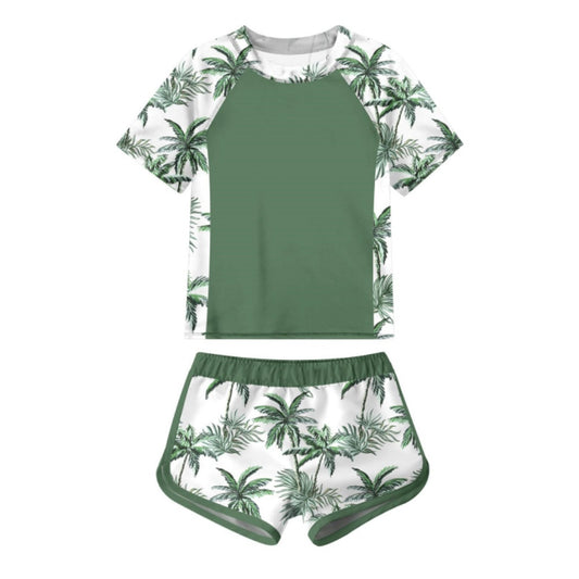 Aideaone Girls Short Sleeve Swimsuit 2-Piece Tankini Rash Guard Bathing Suit Sets Beach Swimwear 8-14T